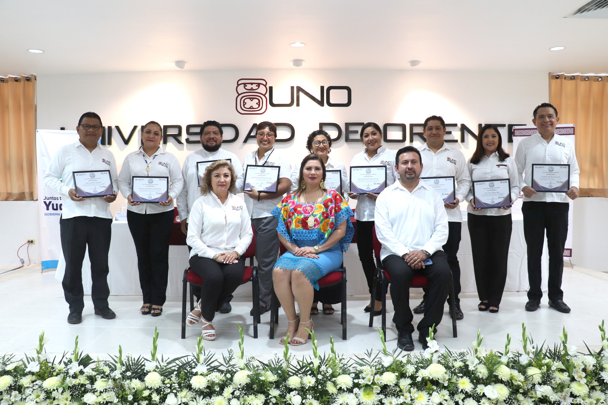 En un ambiente de alegría, celebración y reflexión, la Universidad de Oriente llevó a cabo la celebración de su 17 aniversario, donde el presídium estuvo conformado por la Mtra. Shirley Álvarez Escobar, Rectora; el Lic. Eduardo Miranda Rodríguez, Vicepresidente de la Comisión de difusión y comunicación de la COPARMEX Valladolid en representación del Presidente de la COPARMEX Valladolid e Integrante de la Junta Directiva de la UNO; el Psic. Samuel Herrera Canché, Representante de Impulso Universitario A.C. e Integrante de la Junta Directiva de la UNO; la Lic. Yara Ivonne Baeza Zetina, Directora Académica y el C.P. Eder Gonzalo Azcorra González, Director Administrativo de la Universidad de Oriente.