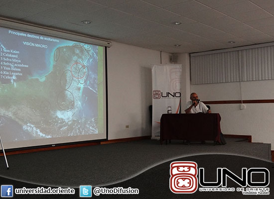 El primer Ciclo de Conferencias de la Universidad de Oriente (UNO) clausuró con la conferencia "Turismo comunitario sustentable" impartida por el Dr. Carlos A. Meade de la Cueva, Director de la Organización Yaxche´ A.C., con más de 20 años de experiencia apoyando a comunidades del Estado de Quintana Roo para el desarrollo de proyectos de turismo alternativo. Actualmente, con el apoyo de la Comisión Nacional Forestal (CONAFOR) tiene a su cargo un proyecto turístico y de desarrollo sustentable en la región de Cobá, Q. Roo. La ponencia, como todas las demás de este ciclo, ha tenido lugar en el auditorio "Pánfilo Novelo Martín".